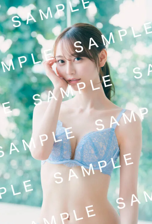 まず解禁されたのは、弓木奈於の大人な一面を見せている、水色のランジェリー姿のふわやかカット。このような普段の弓木からは想像できないセクシーな姿も、写真集には収録されている。